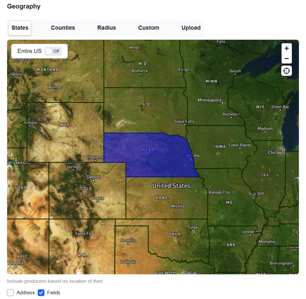 - Fields: Producers must have at least one field in the geography to be included, regardless of their address.